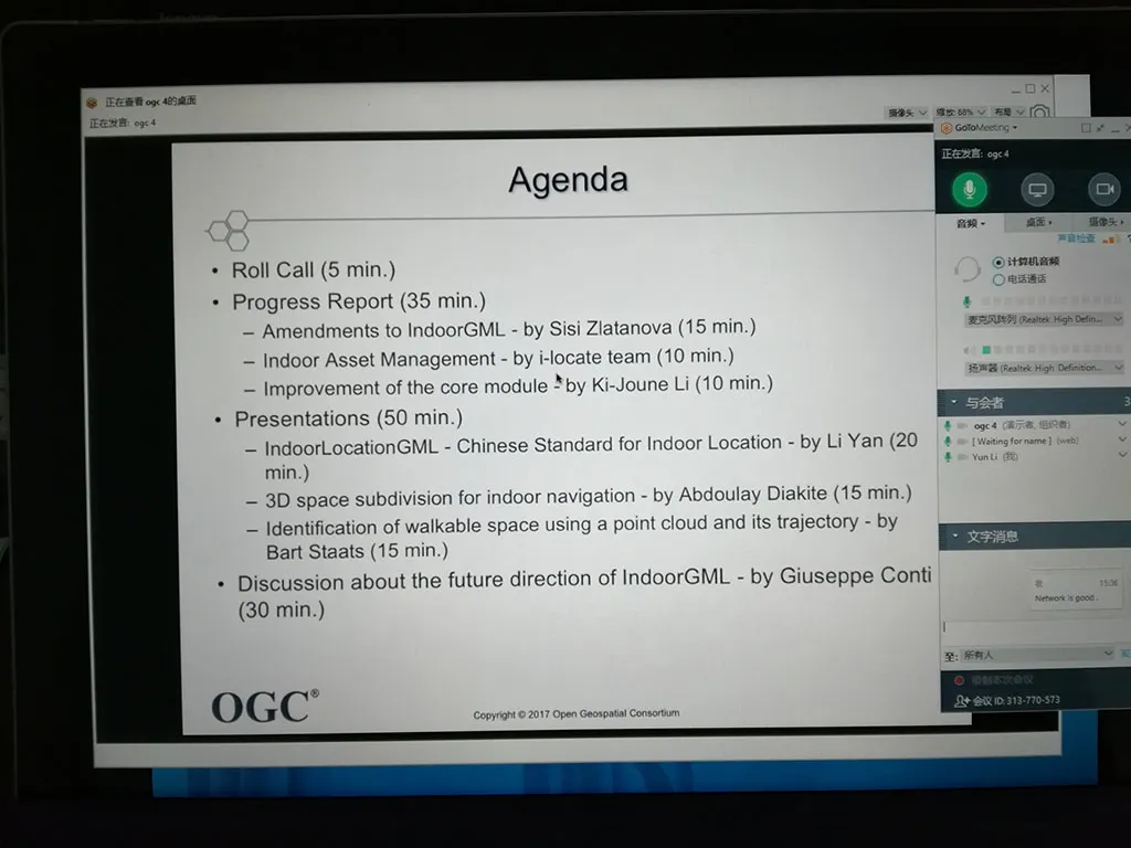 小组博士生李赟参加OGC IndoorGML远程会议并做汇报