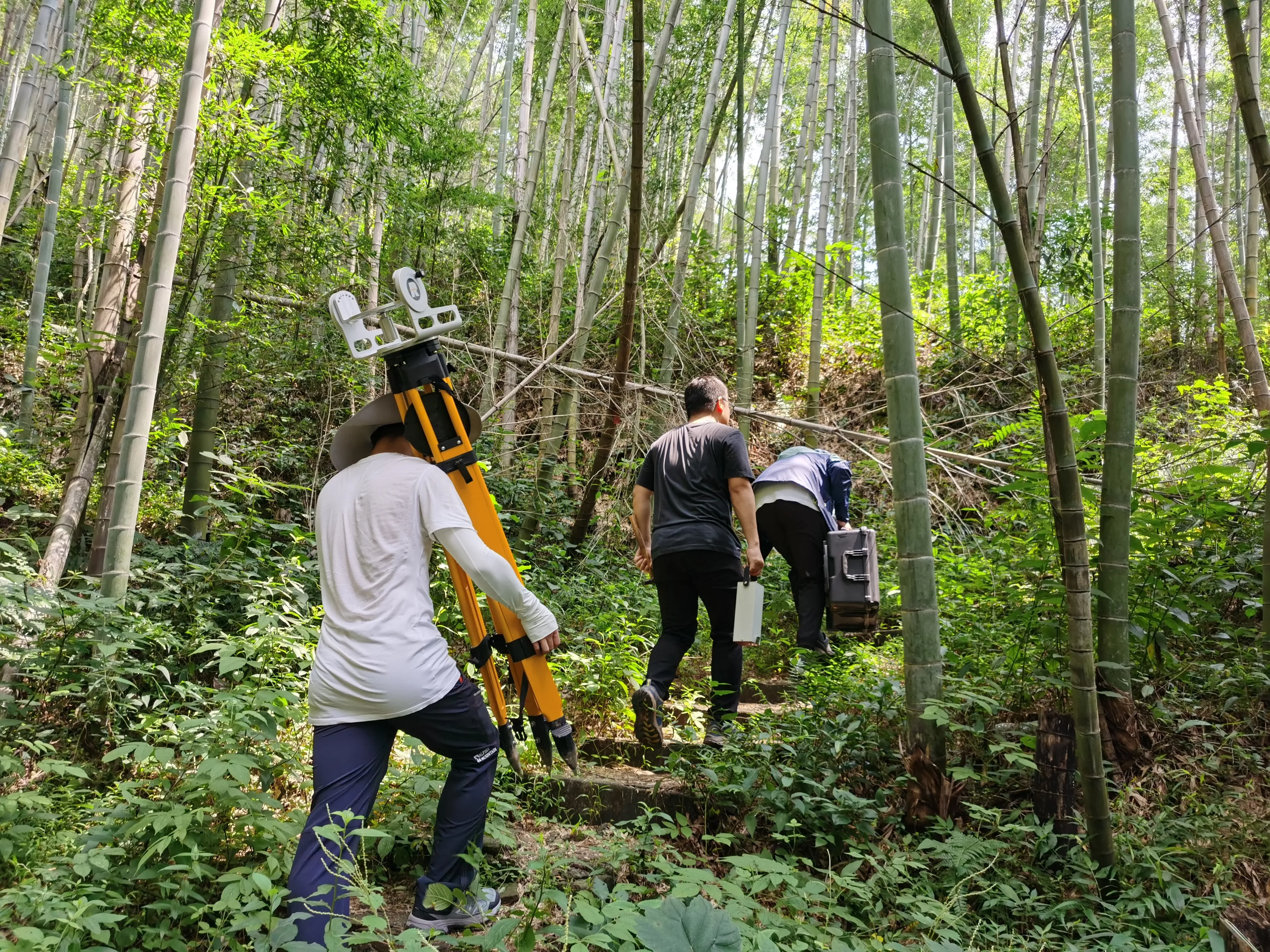 葛旭明一行进入复杂山林作业
