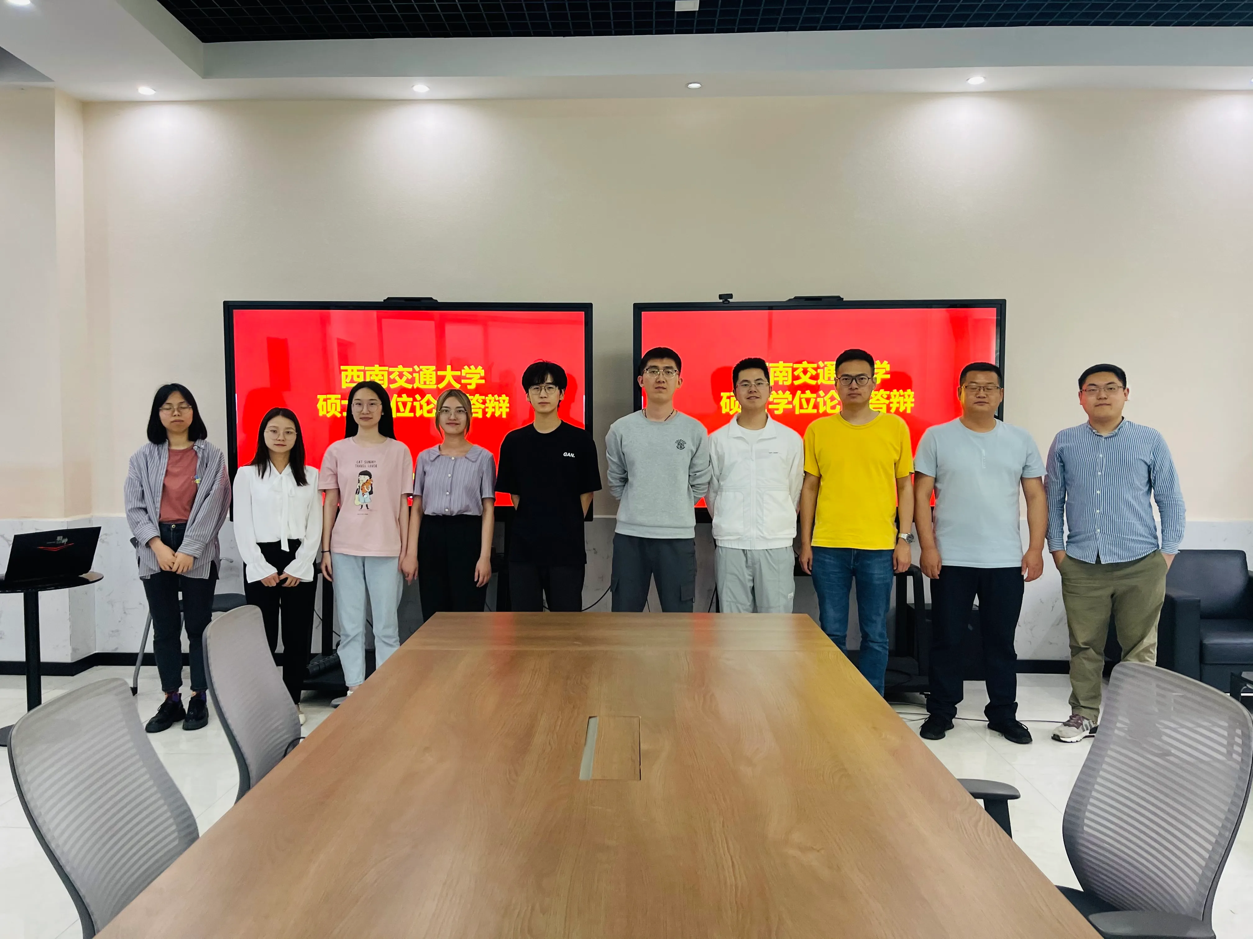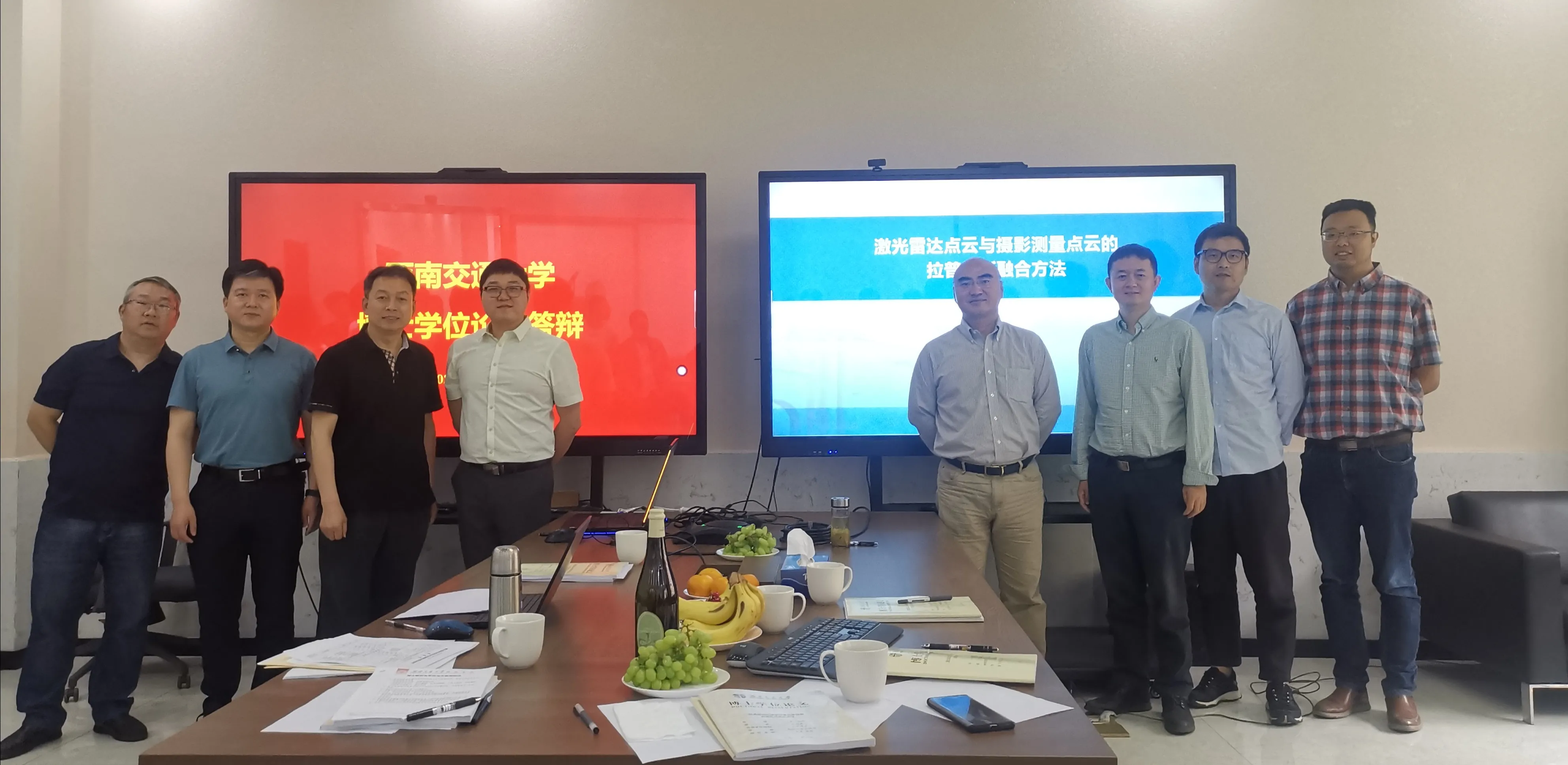 2021年5月22日,朱庆教授指导的陈媚特、张曼迪、赵新瑞、赵甫卿、尚戴雨,丁雨淋副教授指导的陈曦、冯耀,陈敏副教授指导的赵曦、谭贵红,黄波教授指导的苟强在x6104会议室进行了学位论文答辩。答辩委员会主席为西南交通大学朱军教授,委员会成员有电子科技大学周艳副教授、四川测绘地理信息局曹振宇高工、西南交通大学胡翰教授、丁雨淋副教授、陈敏副教授。十位同学均顺利通过了本次答辩。