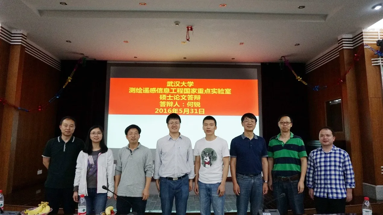 2016年5月31日,在武汉大学测绘遥感信息工程国家重点实验室二楼报告厅举行VGE小组武大硕士研究生学位论文答辩。答辩委员会主席为中国地质大学(武汉)的牛瑞卿教授与)中国测绘科学研究院摄影测量与遥感研究所的黄国满教授。答辩委员会成员包括武汉大学资源与环境学院的陈玉敏教授,测绘遥感信息工程国家重点实验室的江万寿教授、孙开敏副教授与肖志峰副教授。
