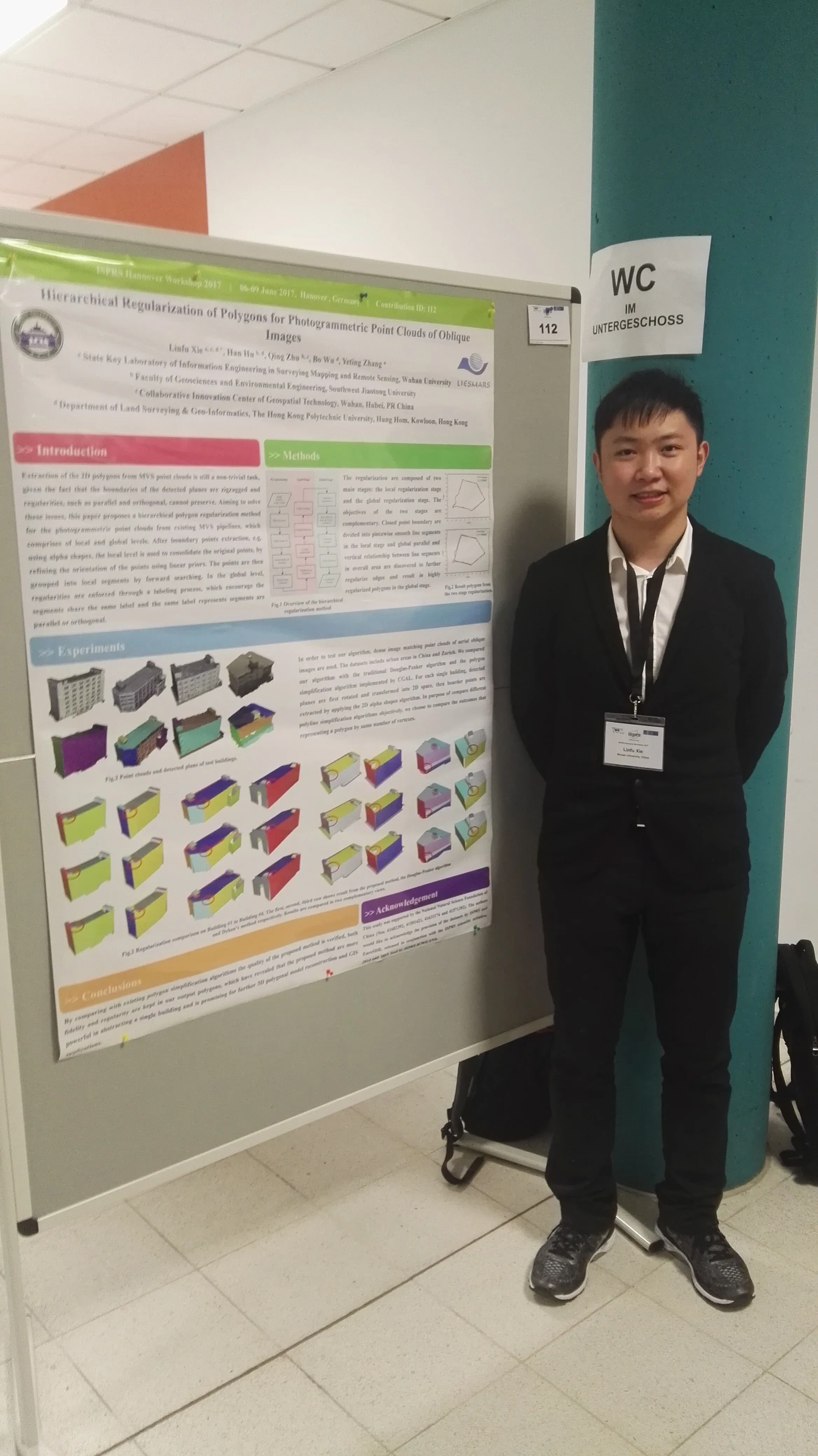 2017年6月6日-9日,ISPRS Hannover Workshop 2017 在德国汉诺威-莱布尼茨大学召开。小组博士生谢林甫在会上做了题为“Hierarchical Regularization of Polygons for Photogrammetric Point Clouds of Oblique Images”的海报展示。