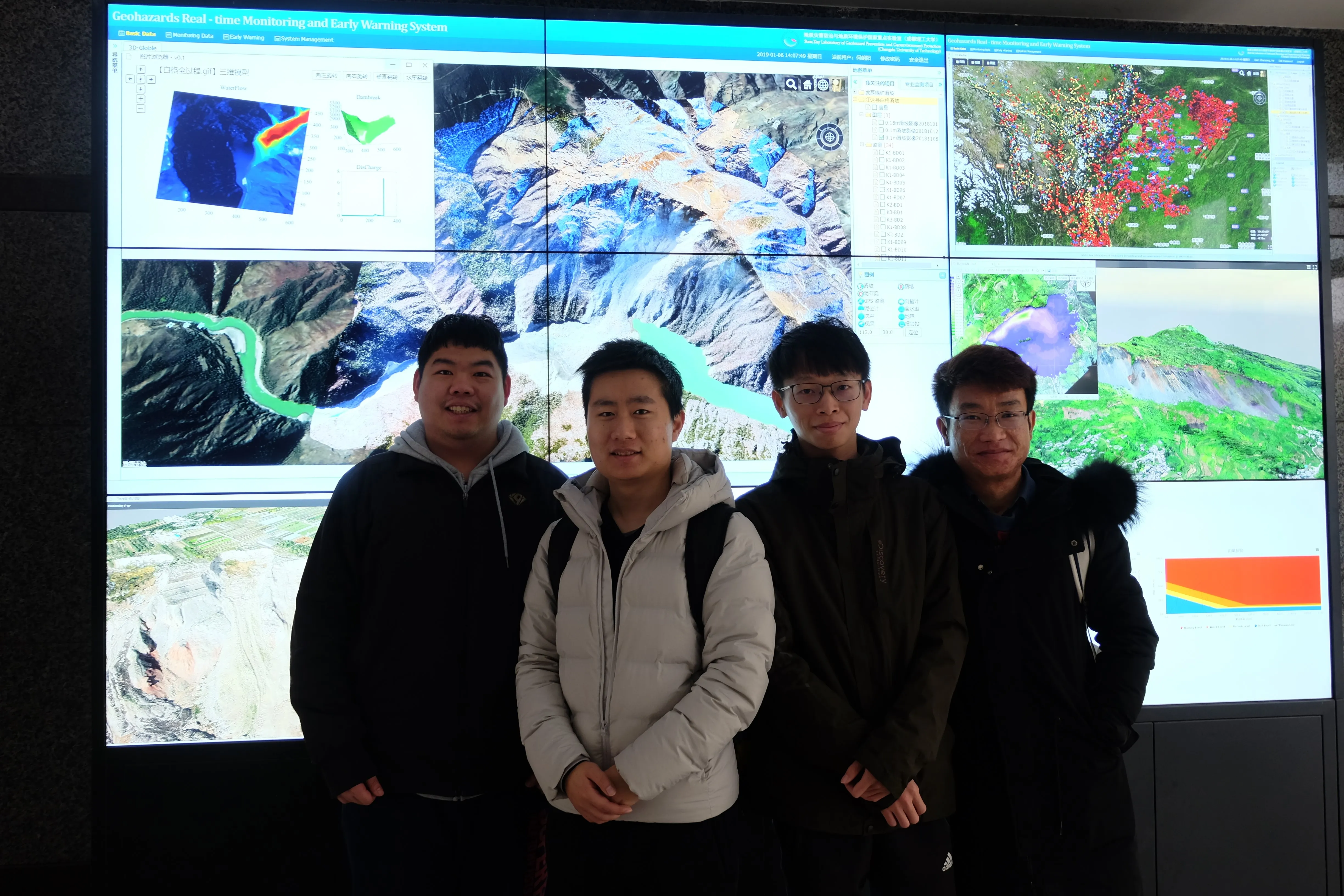 2019年1月6日,VGE小组博士生张骏骁、曾浩炜、陈琳和硕士生周涛、许濒支、孙昆襄到成都理工地质灾害防治与地质环境保护国家重点实验室进行参观交流,与重点实验室师生一起研讨了滑坡灾害早期识别与监测预警的相关问题。