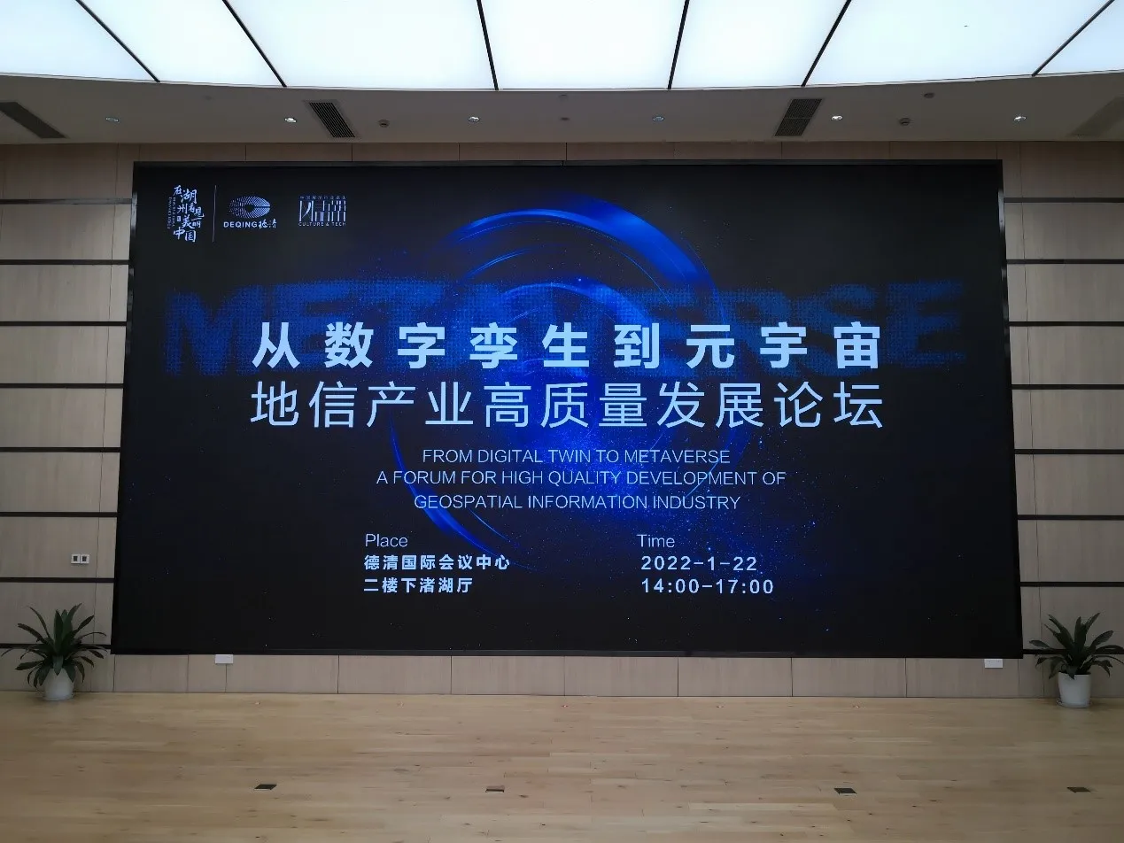 2022年1月22日,“从数字孪生到元宇宙“地信产业高质量发展论坛在德清国际会议中心举行。朱庆应邀参会并按下“长三角地理信息与元宇宙产业创新联盟”启动按钮,还做了“数字孪生与元宇宙”报告。