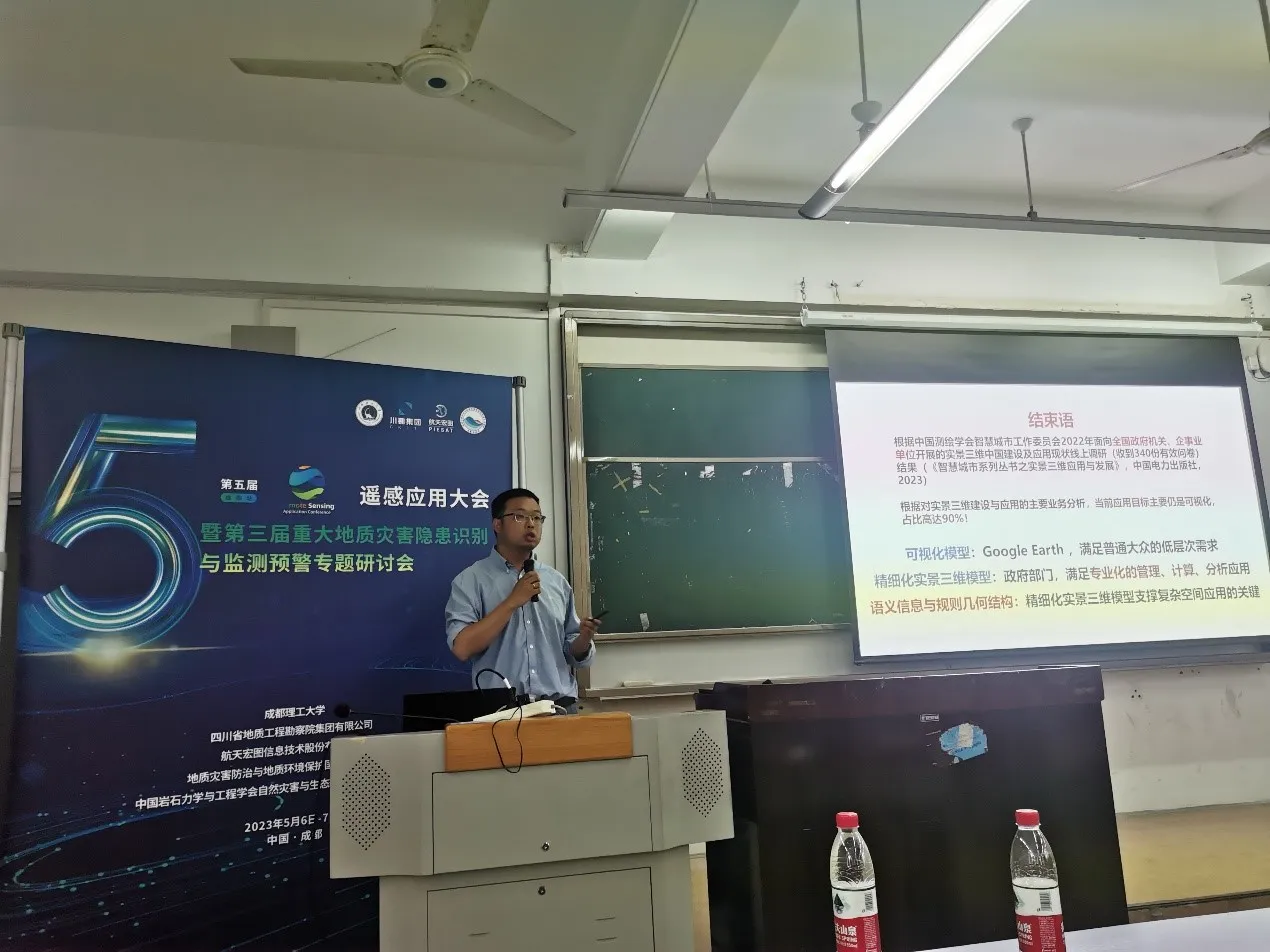 2023年5月6-7日,第五届遥感应用大会暨第三届重大地质灾害隐患识别与监测预警专题研讨会于成都理工大学举办,团队朱庆教授、胡翰教授应邀参会并作报告。